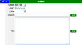 会議種類、会議日記録者、出席者名、内容を管理します。